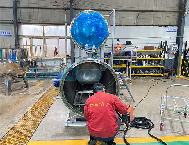 * 壓力控制: 嚴(yán)格遵循工藝要求的壓力控制曲線(反壓控制),特別是升溫、恒溫、冷卻階段,確保鍋內(nèi)壓力始終高于對應(yīng)溫度下的飽和蒸汽壓,防止包裝容器(如玻璃瓶、軟包裝)因內(nèi)外壓差過大而變形或。