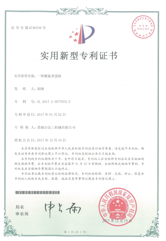 鵪鶉蛋蒸煮剝殼流水線。已申請,號:ZL 2017 20077072.5