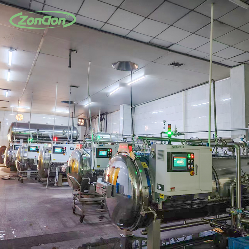 眾工機械有限公司在遼寧丹東成功完成7臺高溫噴淋式殺菌鍋的調試工作,設備已投入運行。該設備主要用于寵物食品(如貓條)的殺菌處理,確保產品衛(wèi)生安全。